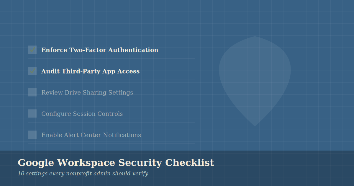 Most nonprofit Google Workspace admins have never touched half these settings. Here's what to check, why it matters, and how to fix it — without a dedicated IT team.